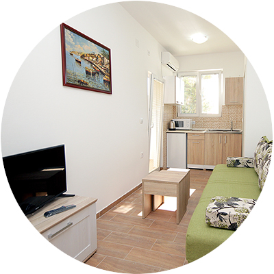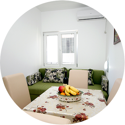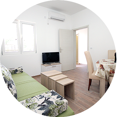 Apartment consists two bedrooms, living room with kitchen and dining room, bathroom and Terrace which is 5m2 equipped for 3 persons. Kitchen is separated from living room and dining room.